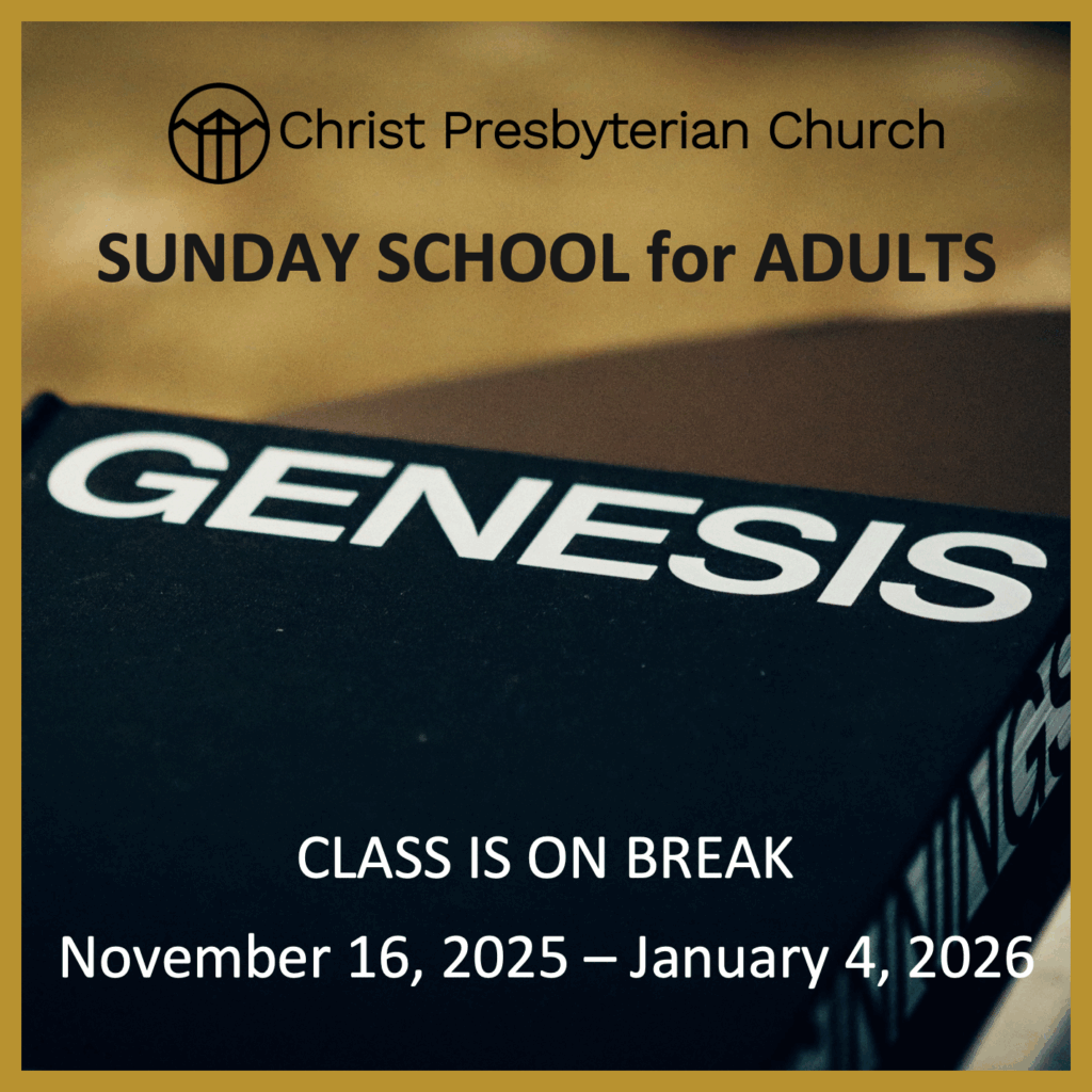 SUNDAY SCHOOL for ADULTS is on break from Sunday, November 16, 2025, and will resume on Sunday, January 4, 2026 (New Year)!