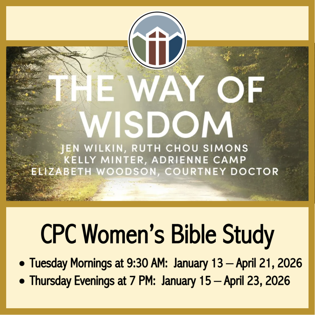 CPC WOMEN’S BIBLE STUDY on the book “The Way of Wisdom” – a study on the Book of Proverbs – meets on Tuesday Mornings and Thursday Evenings.