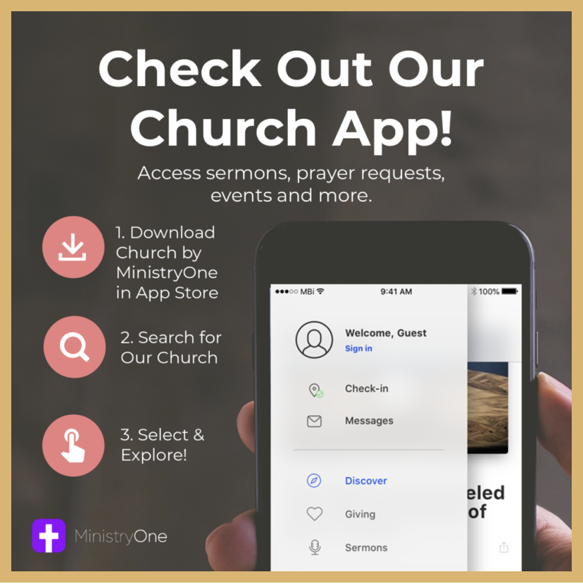 CHURCH MOBILE APP – Download our free Church Mobile App (only for smart phones) as an option to access our Giving Page. Be sure to sign up for an account to use this feature.