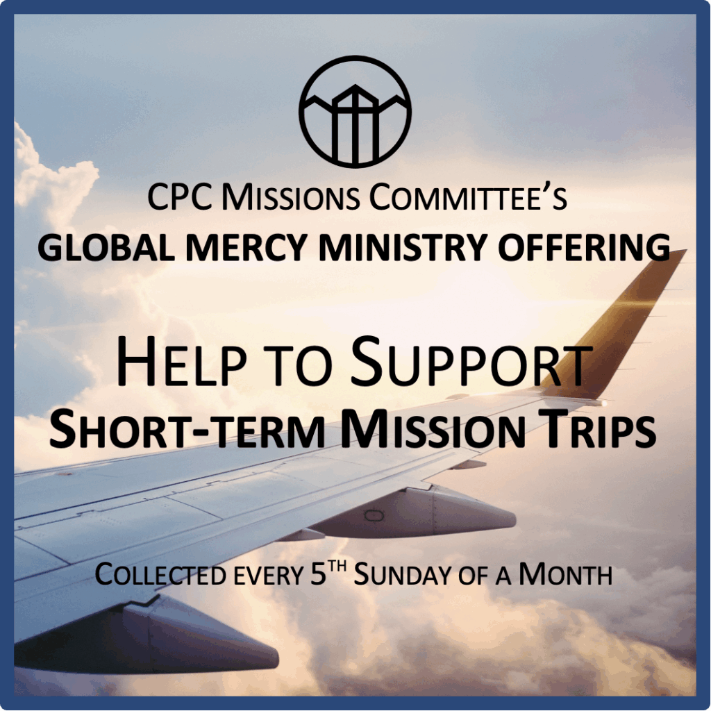 GLOBAL MERCY MINISTRIES OFFERING will be collected on every 5th Sunday of the month to be used to support Missions.